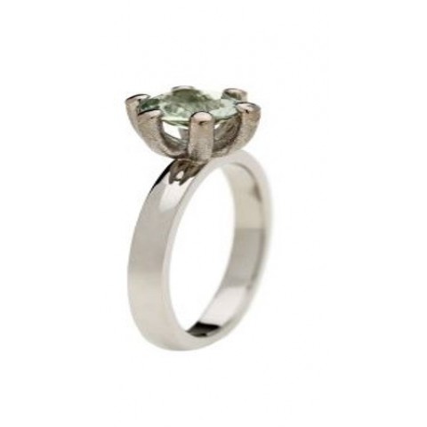 1) Ring i 18K gult guld med bergkristall, 6mm. 2) Ring i 18K vitt guld med citrin, 6mm. 3) Ring i 18K vitt guld med swiss blue topas, 6mm. 4) Ring i 18K vitt guld med prasiolit, 6mm.