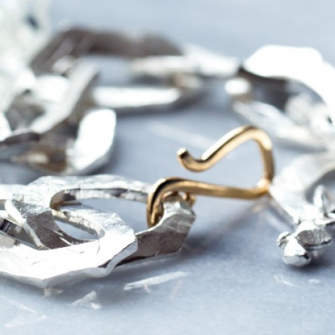 Designern berättar: Storgrim är vår tolkning av en klassisk pansarlänk. Med det handsmidda Z-låset knäpper du den där det passar, genom att ställa valfri ögla på högkant. I slutet av kedjan hänger en liten sköldpadda, symbolen för ett långt och lyckligt liv.